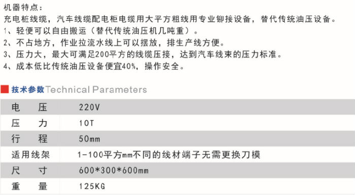 新能源10噸液壓端子機(jī) 不同線材端子不需要更換刀模